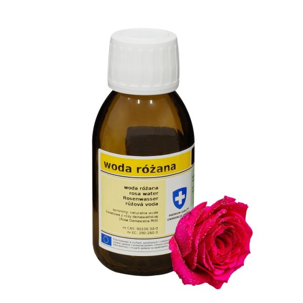 Synonyme: natürliches Blütenwasser der Damaszener-Rose (Rosa Damascena Mill), konservierungsmittelfreies Rosenhydrolat