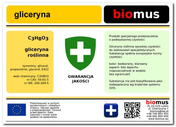 Gliceryna roślinna czysta farmaceutyczna min 99,5%