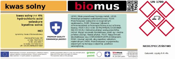 Kwas solny 4 % Czysty. Kwas chlorowodorowy. HCl