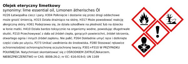 Synonimy: lime essential oil, Limonen ätherisches Öl, eteryczny olejek limonkowy, olejek eteryczny z limonki