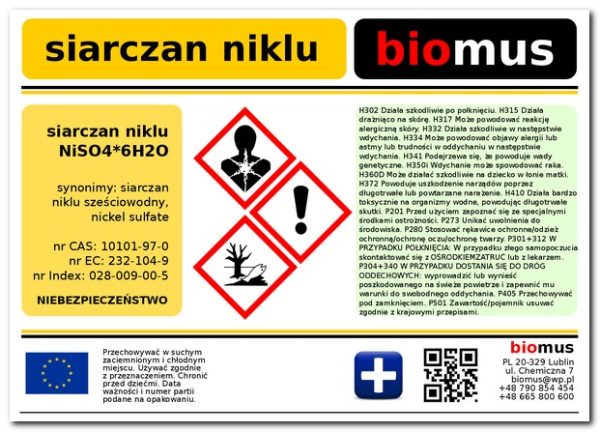 Synonimy: siarczan niklu sześciowodny, nickel sulfate hexahydrate