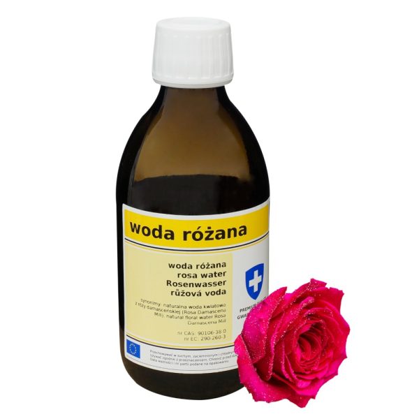 Naturalna woda różana, znana również jako hydrolat z róży damasceńskiej, to wysokiej jakości surowiec pozyskiwany w wyniku destylacji parą wodną świeżych płatków Rosa Damascena Mill.